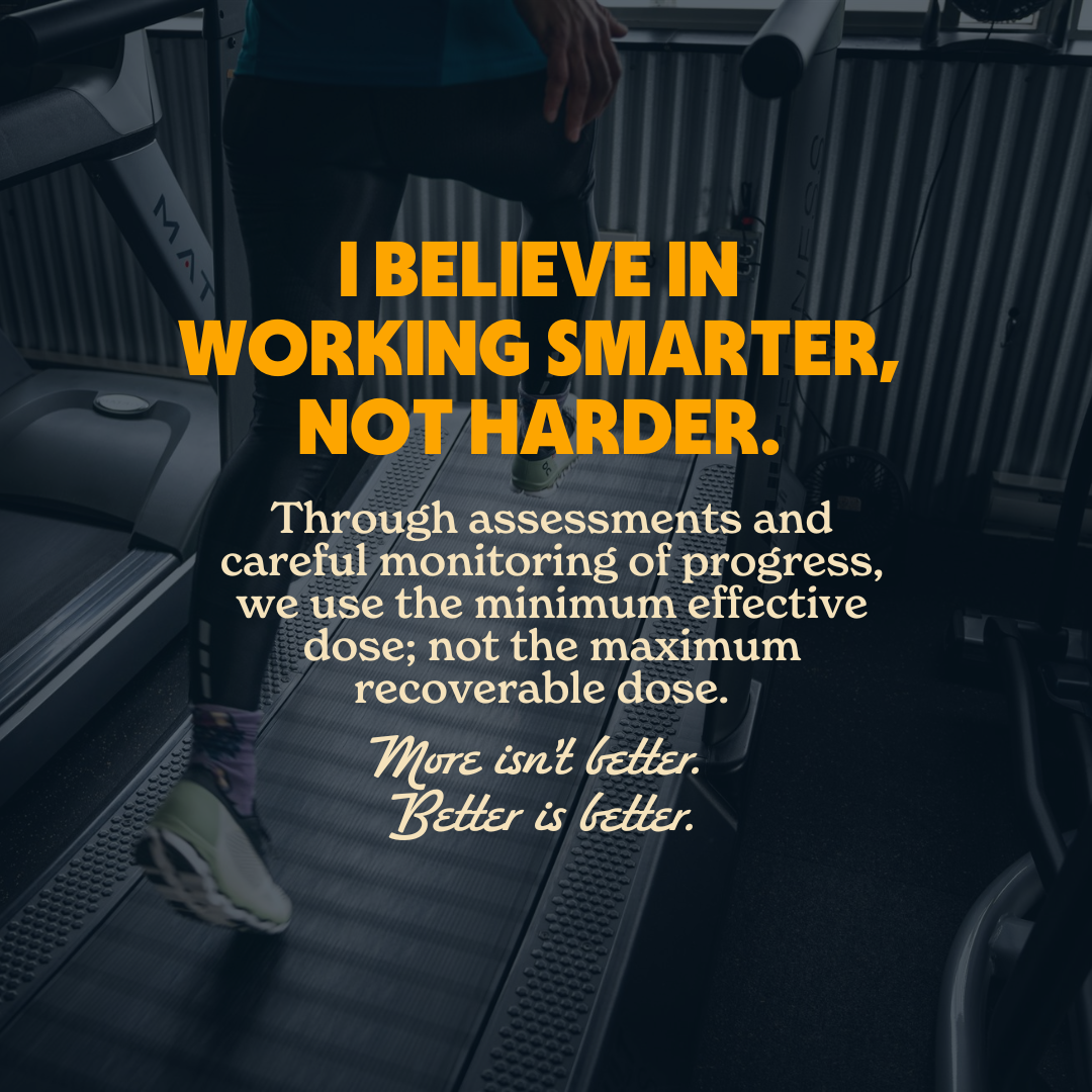 I value time and realized that the best way I could help people who were interested in getting to their goals in an expedited manner was to create an individualized approach based on their lived experience and their assessments. No guessing. No templates. No modifications or “working around” injuries or limitations. Now, my entire approach is in a 1:1 setting because that’s how I am able to best serve those who need and want my help.