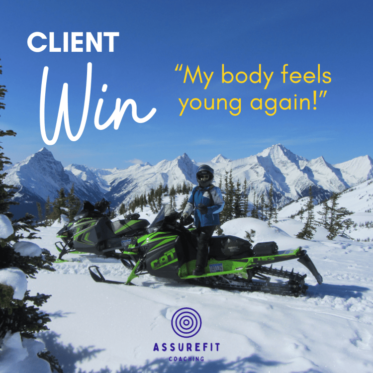 Imagine my delight when I rode for the first time this season and had absolutely no pain! I was able to maneuver my sled through rough terrain, deep powder, deep bumps and up steep climbs with strength and agility that I haven’t felt for many, many years! My body feels young again! I am so very grateful for her thoughtful and individualized approach to getting me strong and fit again, not only for snowmobiling, but for many other activities I love to do.”